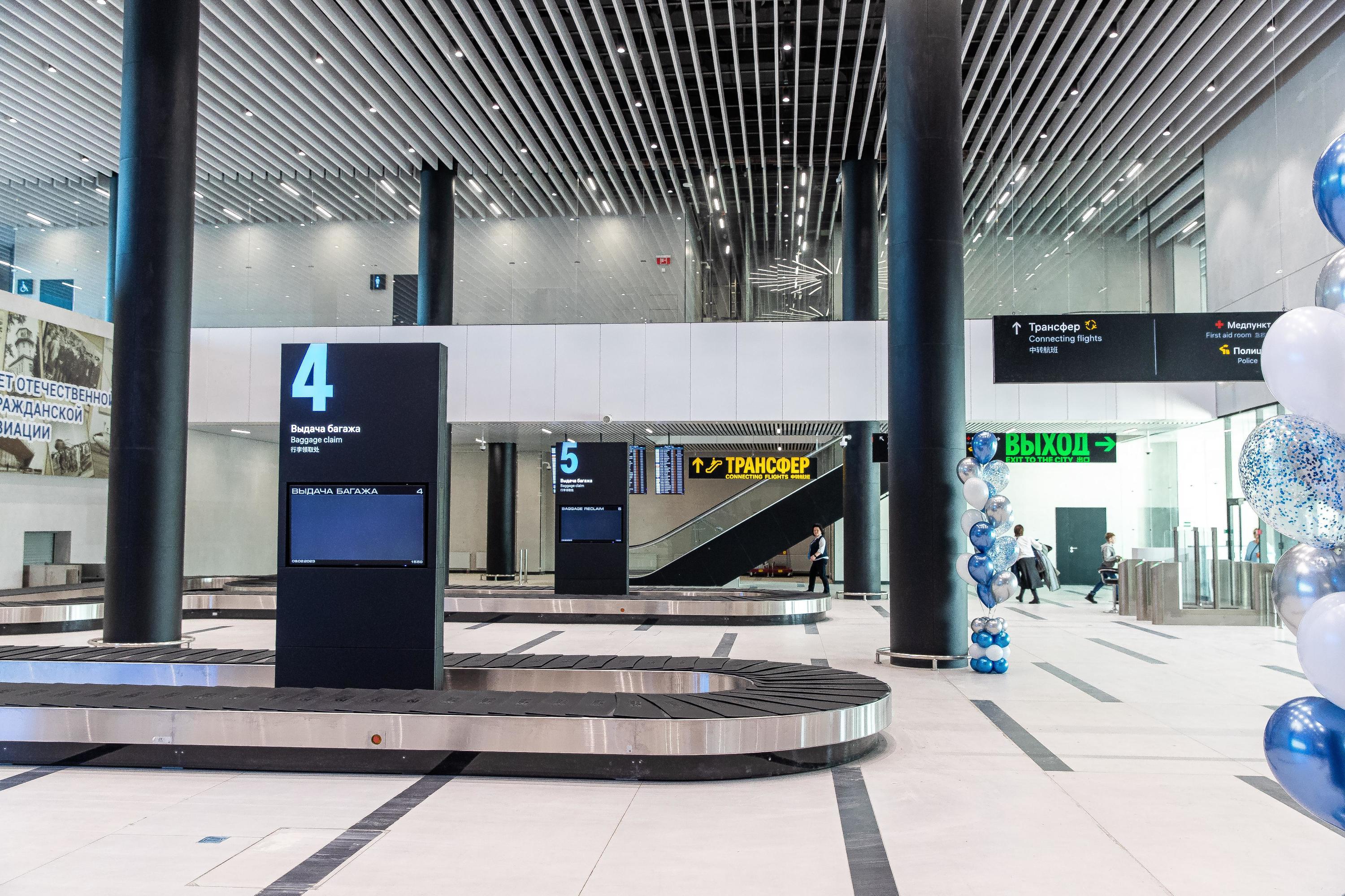 Новая система обработки багажа с пропускной способностью 4 800 единиц багажа в час позволяет одновременно комплектовать багажом более 20 рейсов в час и полностью удовлетворить потребности аэропорта при расширения аэровокзального комплекса в будущем.