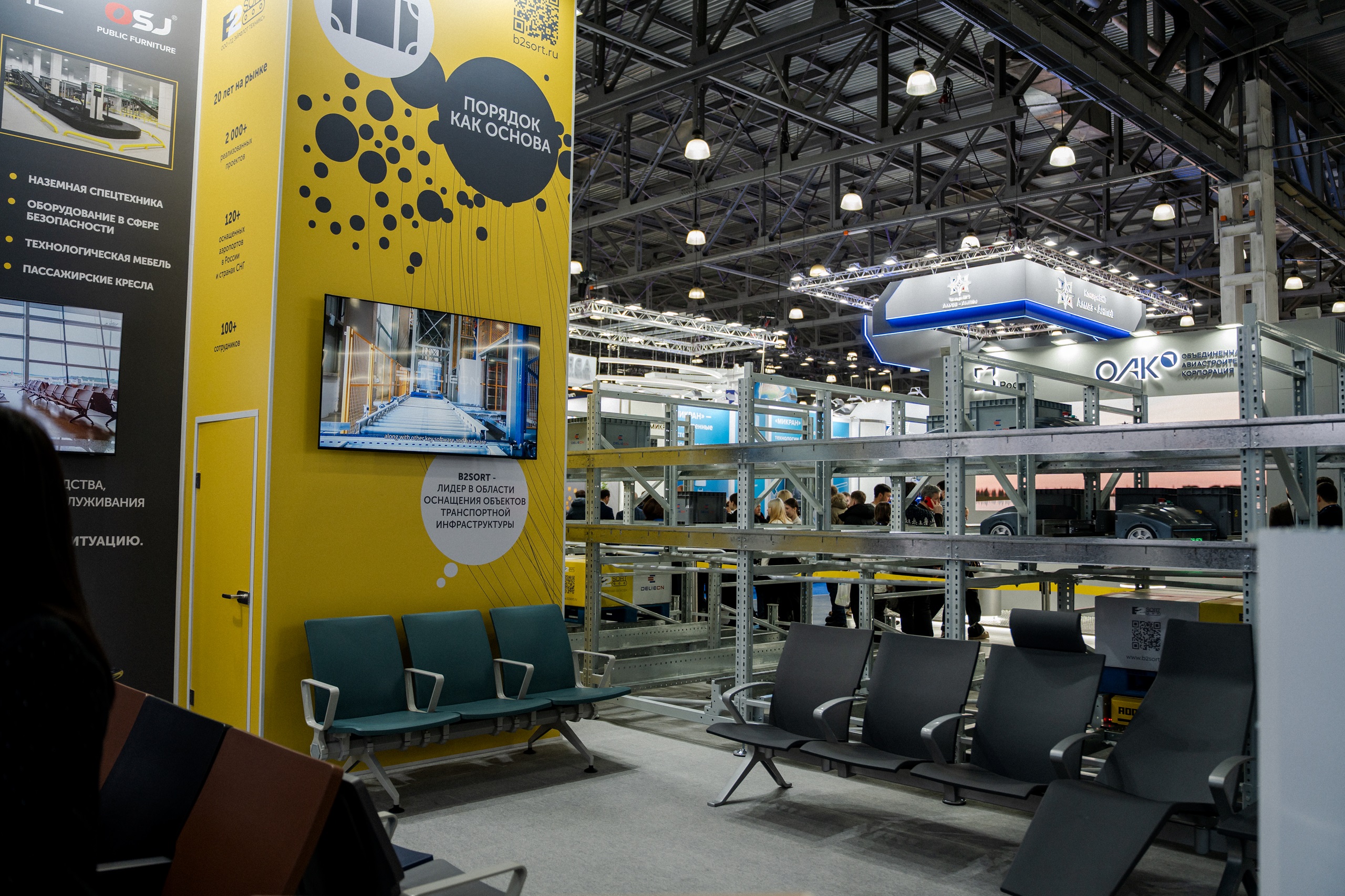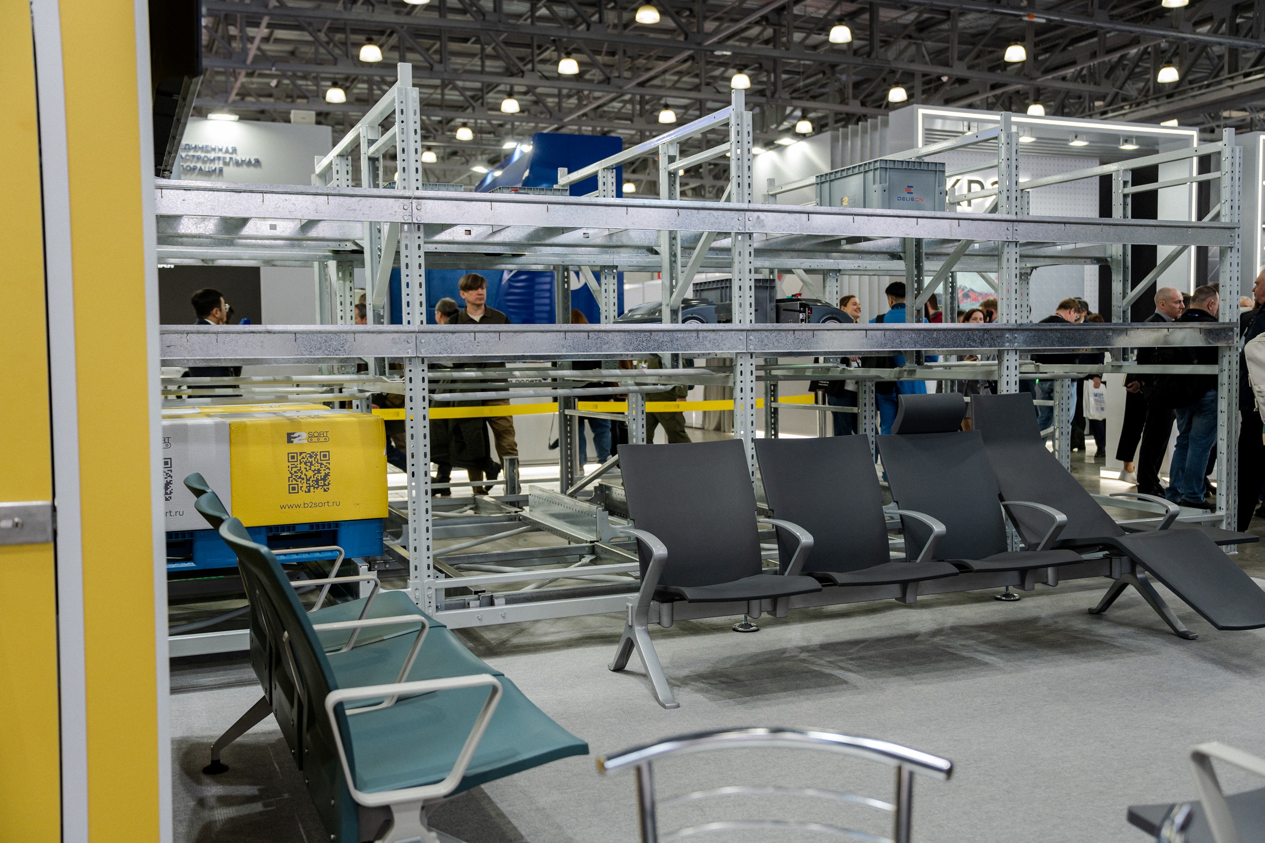На стенде B2SORT № G500 былат представлена уникальная новинка нового направления деятельности: прототип высотного склада, построенного на базе самонесущих стоек и оснащенного автоматизированной системой 3D-шаттлов. Эта система обеспечивает высокую эффективность хранения и управления грузами, оптимизируя использование пространства и ускоряя процессы погрузки и разгрузки. Для аэропортов и логистических операторов такие решения означают переход к принципиально новому уровню управления грузовыми потоками. Высотный склад с системой 3D-шаттлов позволяет в разы увеличить плотность хранения на ограниченной площади, что особенно критично для аэропортовой инфраструктуры, где каждый квадратный метр имеет высокую стоимость. Автоматизация процессов снижает зависимость от ручного труда, минимизирует ошибки при обработке багажа и грузов, ускоряет сортировку и отгрузку, а также повышает предсказуемость логистики в пиковые периоды. В практическом смысле это означает более быстрые операции, меньше задержек рейсов и более устойчивую работу грузовых и багажных терминалов при росте пассажиропотока.
